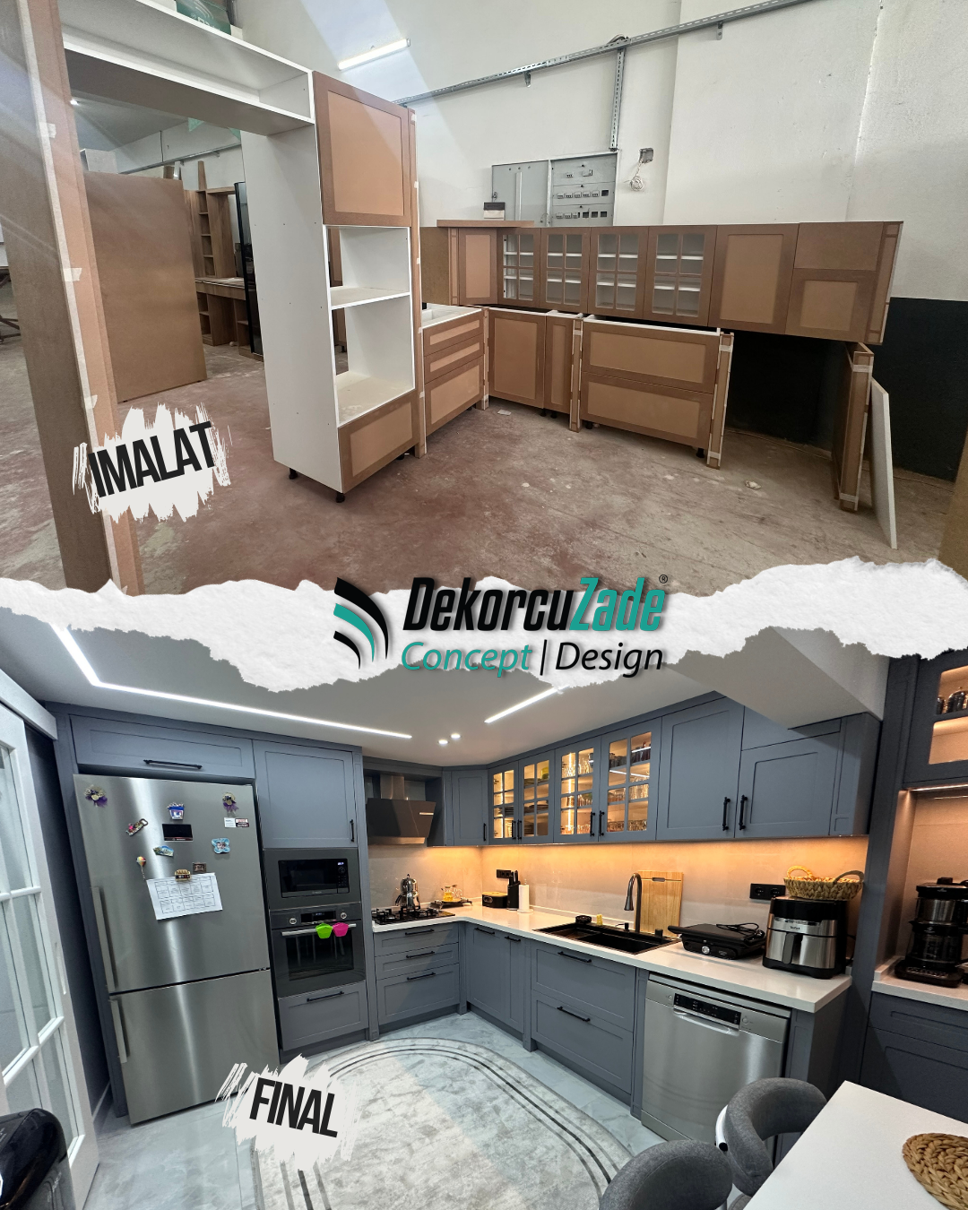 DekorcuZade Concept, mimari tasarım, üretim ve uygulama süreçlerini aynı çatı altında yürüterek müşterilerine anahtar teslim ev tadilatı hizmeti sunmaktadır.